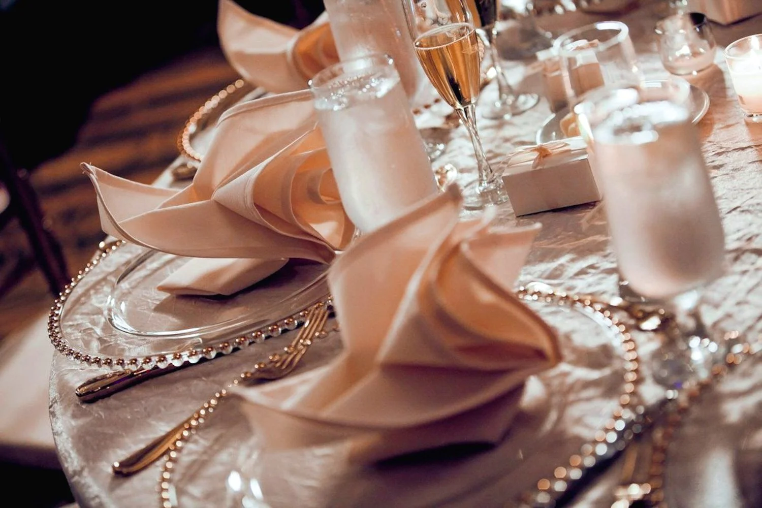 Advice - Some couples opt to do a “Reception First Look” in which the completed reception space is revealed to them for the first time before guests come in. It can make for a genuine reaction while also giving you time for a few portraits in the middle of the dance floor or sitting at an empty table.